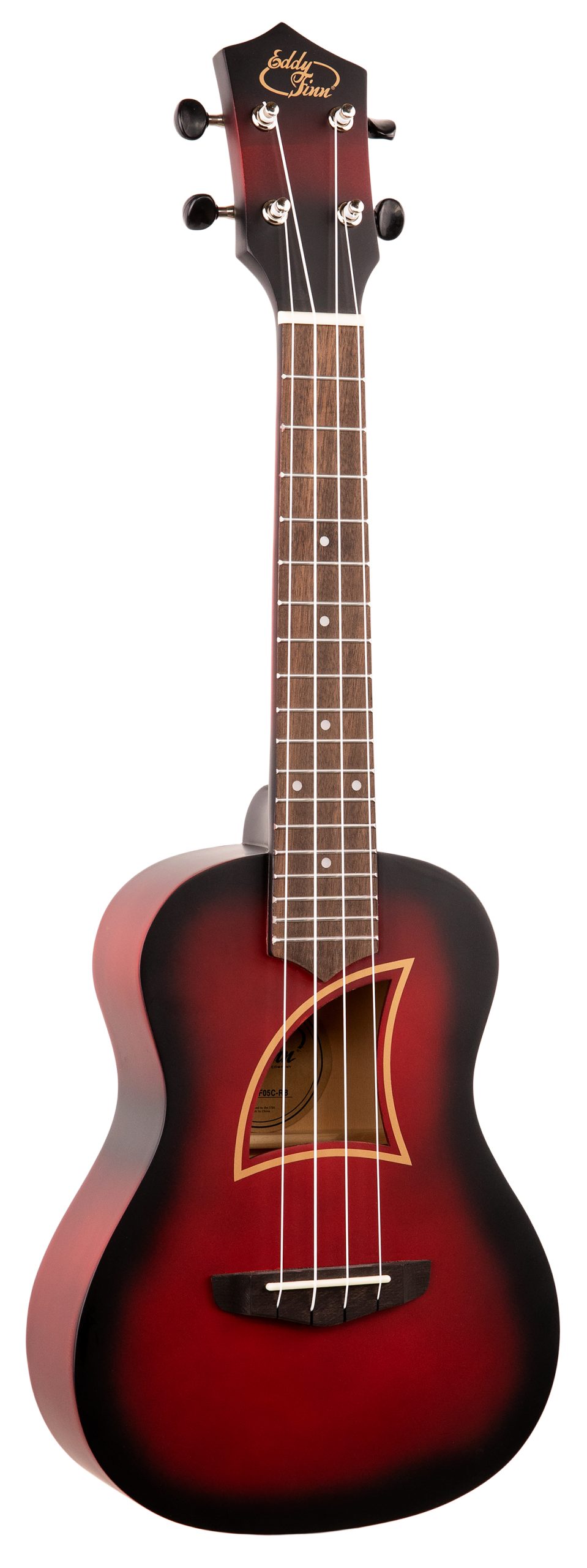 EDDY FINN COLOR BURST UKULELE WITH GIG BAG, RED BURST LINDEN WOOD TOP/BACK/SIDES, NATO NECK, TECHWOOD FINGERBOARD