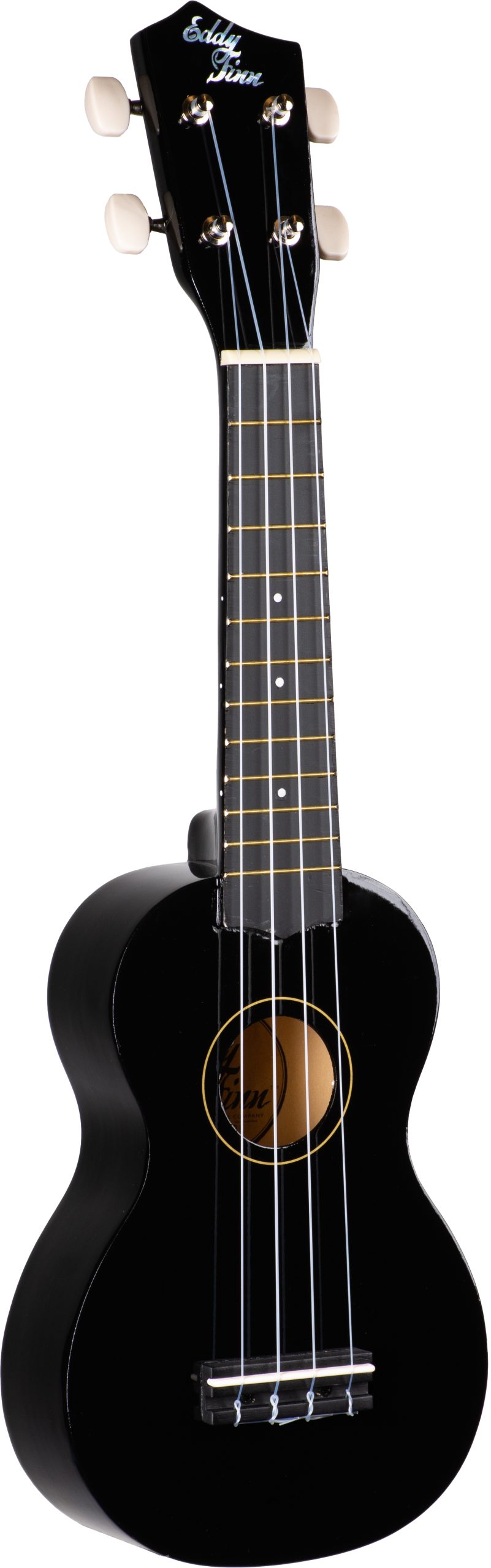 EDDY FINN SOPRANO UKULELE WITH BAG, GLOSS FINISH, BLACK BASSWOOD TOP/BACK/SIDES
