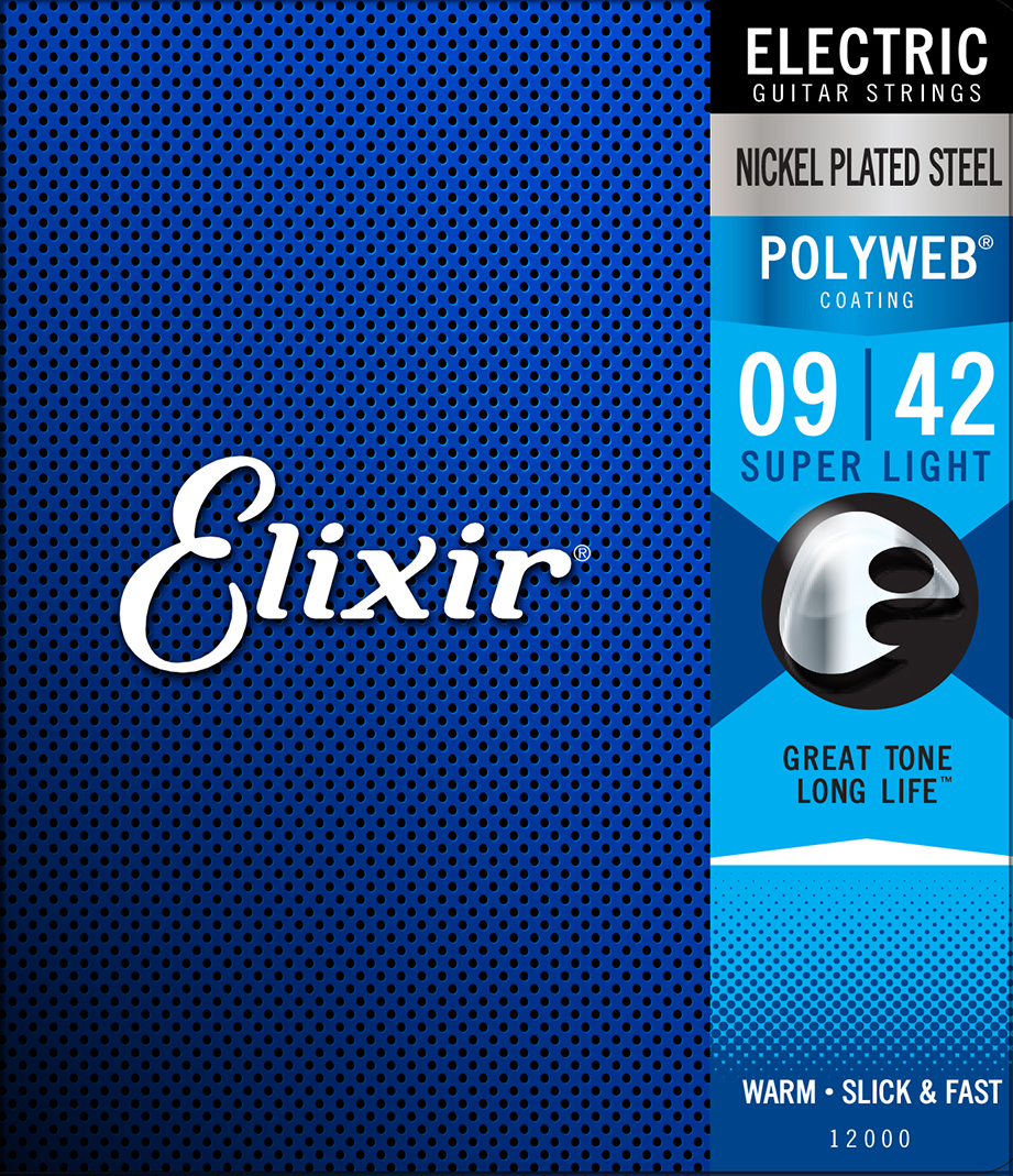ELIXIR NICKEL PLATED ELECTRIC GUITAR STRING SET W/POLYWEB WARM TONE WITH A SLICK AND FAST FEEL